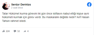 Tatar Hükümet kurma görevini iki gün önce istifasını kabul ettiği kişiye ayni hükümeti kurmak için görev verdi.