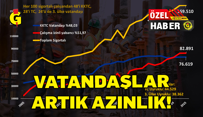 Sigortalı çalışanlar içinde KKTC vatandaşlarının sayısı %48’e inerek ülke tarihinin en düşük seviyesini gördü.