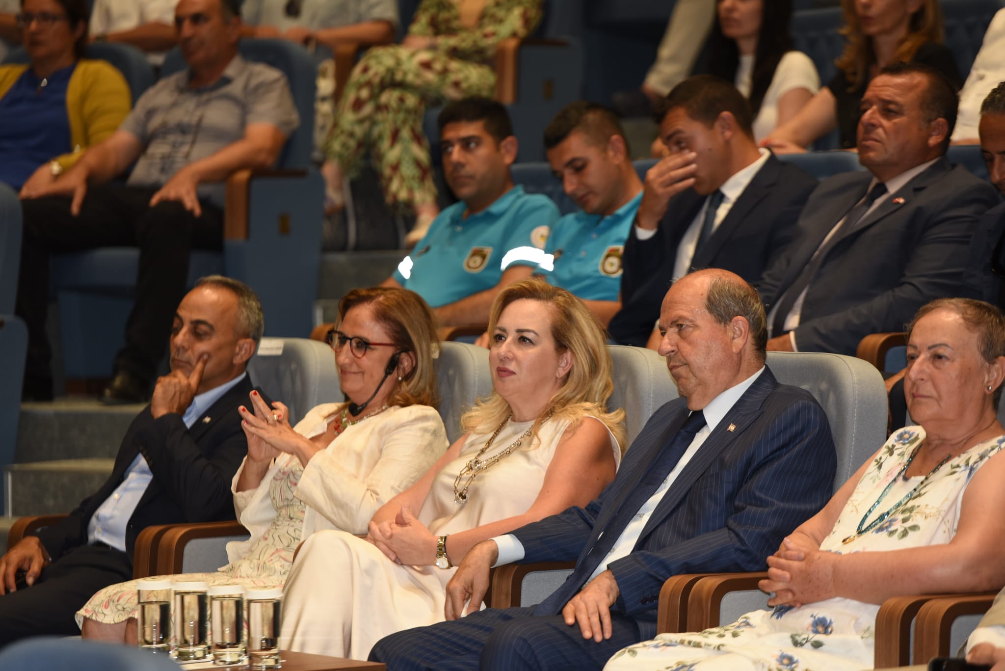 Cumhurbaşkanı Ersin Tatar konuşmasının başında, Cumhuriyet Yerleşkesi’ndeki cami, milli kütüphane, amfitiyatro gibi binaların açılışının 20 Temmuz’da yapılacağını duyurdu.
