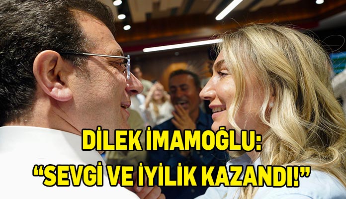 İstanbul Büyükşehir Belediye (İBB) Başkanlığı seçiminde, CHP’nin adayı ve mevcut başkan Ekrem İmamoğlu’nun eşi Dilek İmamoğlu’nda seçim sonrası ilk yorum. x sosyal medya hesabından eşi Ekrem İmamoğlu’yla fotoğrafını paylaşan Dilek İmamoğlu, “Sevgi ve iyilik kazandı!” diye yazdı.