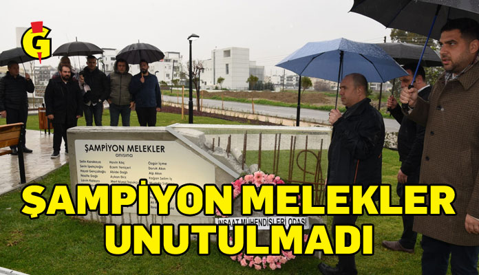 Sessizliğin ardından İMO Anı Parkında merhum üyeler ve Şampiyon Meleklerinin isimlerinin bulunduğu yerlere çelenkler bırakıldı.