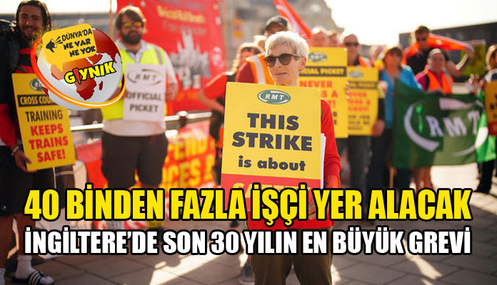 İngiltere’de Ulusal Demiryolu, Denizcilik ve Ulaştırma İşçileri Sendikası (RMT), işverenle maaşlara yönelik yürütülen görüşmelerin dün çıkmaza girmesiyle greve gitti. Network Rail ve diğer demiryolu operatörlerinden RMT’ye bağlı binlerce işçinin bugün başlattığı grev, 23 ve 25 Haziran’da da devam edecek. Son 30 yılın en büyük grevinde 40 binden fazla işçi yer alacak.