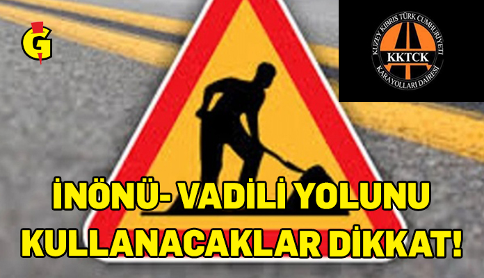 Karayolları Dairesi, İnönü ile Vadili köyleri arasındaki anayolun yarından itibaren trafiğe kapalı olacağını duyurdu. Daireden yayımlanan duyuruda, söz konusu yolda, Karayolları Dairesi kontrolünde, Mesarya Belediyesi tarafından yağmur suyu drenaj çalışması yapılacağı belirtildi. Yolun ne zaman trafiğe açılacağı belirtilmedi.