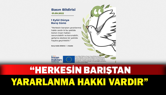 İnsan Hakları Platformu 1 Eylül Dünya Barış Günü dolayısıyla ortak basın açıklaması yayınlayarak, Barış Hakkı Bildirisi’ne işaret etti.