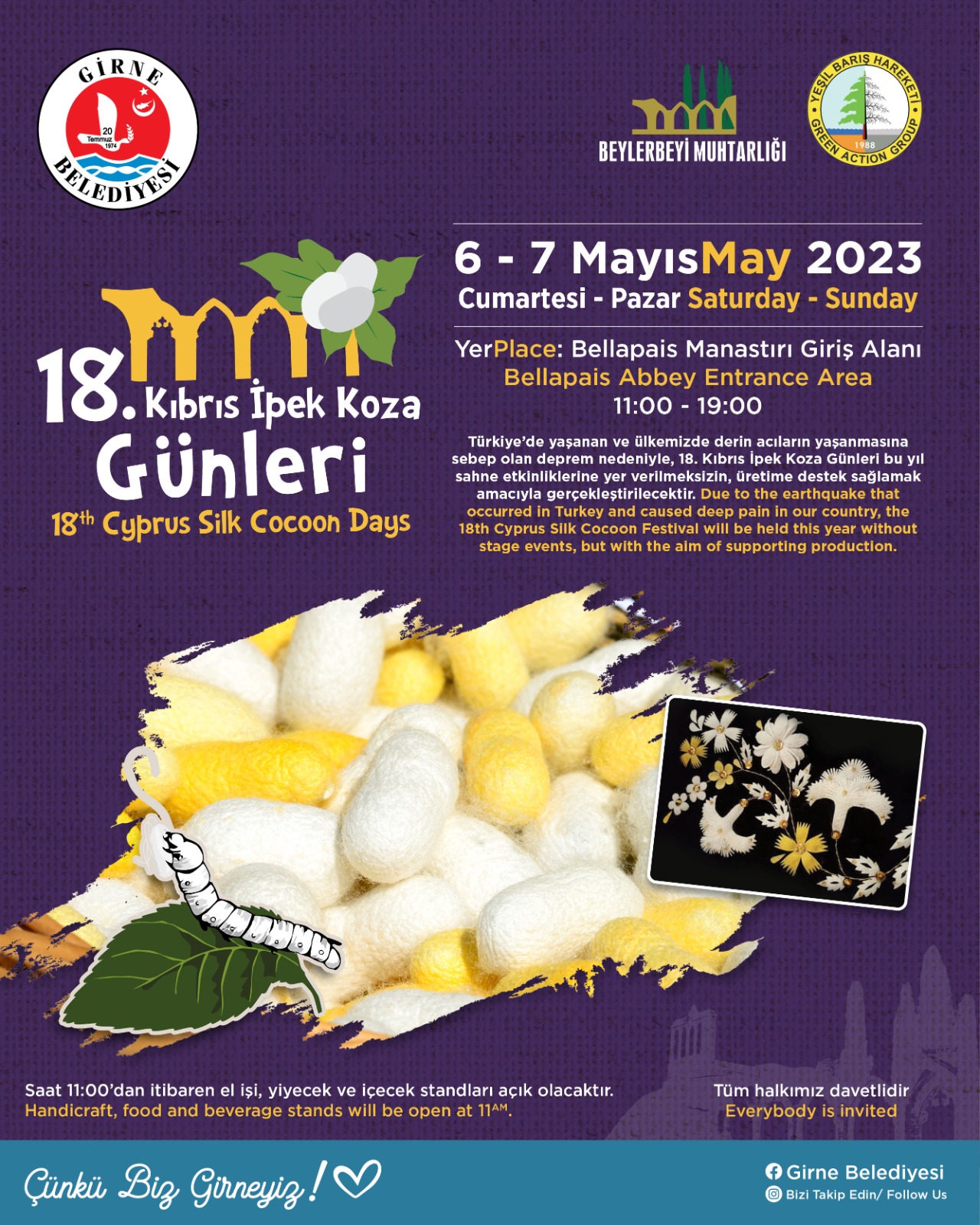 Girne Belediyesi, Yeşil Barış Hareketi ve Beylerbeyi Muhtarlığı işbirliğinde ve KKTC Telsim İletişim Sponsorluğunda düzenlenecek olan 18. Kıbrıs İpek Koza Günleri 6-7 Mayıs tarihlerinde gerçekleşiyor. Her yıl olduğu gibi bu yılda birbirinden güzel etkinliklerin ve kültürel tatların yer alacağı 18. Kıbrıs İpek Koza Günleri 6 Mayıs Cumartesi günü saat 14:00’te resmi açılışını gerçekleştiriyor.