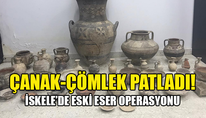 Polis Basın Subaylığı’ndan verilen bilgiye göre bugün, saat 14.00 sıralarında, İskele’de Narkotik ve Kaçakçılığı Önleme Müdürlüğü ekipleri tarafından gerçekleştirilen operasyon sonucu 49 yaşındaki Z.D.’nin tasarrufunda eski eser olduğuna inanılan toplam 39 parçadan oluşan testi, çömlek vb bulunarak emare olarak zapt edildi.