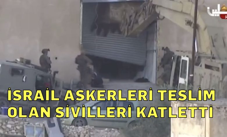 Görüntülerde, Filistinli iki sivil Batı Şeria’nın kuzeyindeki Cenin kentinde silahlı İsrail güçlerinin çevrelediği bir binadan çıkarken, kollarını kaldırarak teslim oluyor ve yere uzandıkları görülüyor. İsrail Güvenlik Güçlerine bağlı askerler daha sonra teslim olan sivilleri tekrar binanın içine geri yönlendiriyor ve ardından yakın mesafeden ateş açarak öldürüyor.