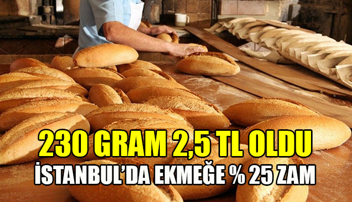 İstanbul Ticaret Odası meclis toplantısından çıkan karara göre, İstanbul’da ekmek fiyatına yüzde 25 zam yapıldı. Böylelikle, 230 gram ekmeğin fiyatı 2 TL’den 2,50 TL’ye yükseldi.
