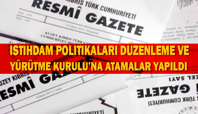 Buna göre, Başbakanlık Müsteşarı Berhan Ongan, Ekonomi ve Enerji Bakanlığı Müsteşarı Şahap Aşıkoğlu, Maliye Bakanlığı Müsteşarı Burak Şoföroğlu, Çalışma ve Sosyal Güvenlik Bakanlığı Müstaşarı Ecevit Alper, Çalışma ve Sosyal Güvenlik Bakanlığı Bakanlık Müdürü Meray Dürüst ve İhtiyat Sandığı Dairesi Müdürü Ali Anıl Yüce, İstihdam Politikaları Düzenleme ve Yürütme Kurulu’na 2 yıl süre ile temsilci olarak atandı.