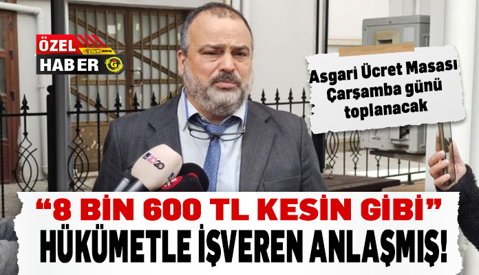 Asgari ücret masasının Çarşamba günü toplanacağını belirten Arhun; hükümet ve işverenin ortak noktada olduğunu belirterek 8 bin 600 TL’lik rakam konusunda mutabık kalınacağının “büyük bir ihtimal” olduğunu dile getirdi.