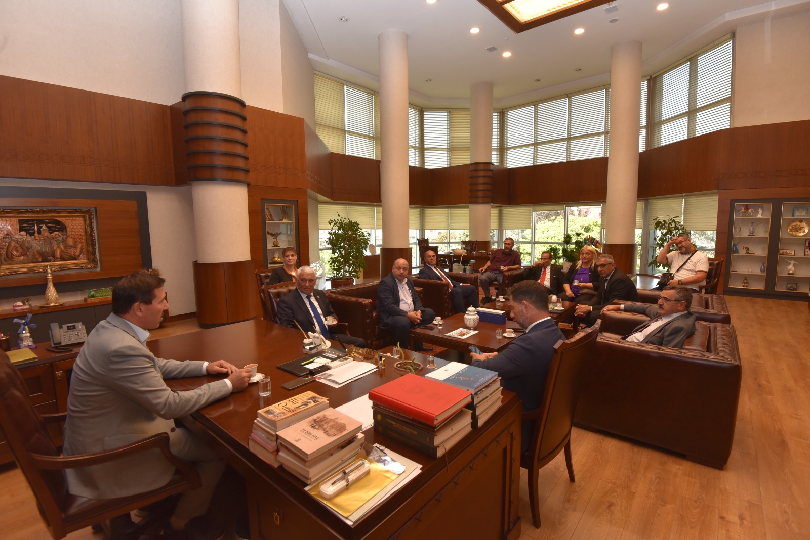 Temaslarına Konya’dan başlayan heyet, burada ilk olarak Selçuklu Belediye Başkanı Ahmet Pekyatırmacı ile biraraya geldi. Selçuklu Belediyesi’nin yürütülen çalışma, proje ve faaliyetlerine ilişkin bilgi alan Belediye Başkanları, saha gezisi gerçekleştirerek incelemelerde bulundu.