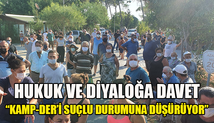 Kamp-DER sorunu KKTC Mahkemelerinin verdiği kararlar ve diyalog yolu ile çözmek istemektedir, tüm iyi niyetli tutumumuza rağmen, hukuk dışına çıkılarak yaratılmaya çalışılan oldu bittilere Kamp-DER yönetim kurulu ve üyeleri yasalar çerçevesinde her türlü mücadeleyi vermekte kararlıdır.