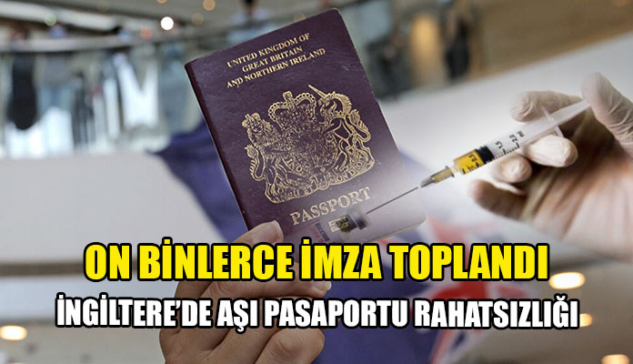 Ülke vatandaşları ve yurt dışından gelen ziyaretçilerin aşı durumunu belirten Kovid-19 aşı pasaportunun gündemde olduğu İngiltere’de, pasaporta yönelik tepkiler sürüyor. Yürütülen imza kampanyası kapsamında şimdiden 126 binin üzerinde imza toplandığı bildirildi.