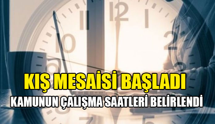 Kamu iş yerlerinde kış mesaisi bugün itibariyle başladı. Bakanlar Kurulu’nun onayladığı karar uyarınca, kış mesaisi 8 Mayıs 2022’ye kadar sürecek.