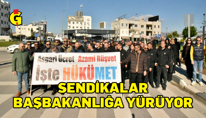 Metehan Çemberinde toplanan Kıbrıs Türk Amme Memurları Sendikası (KTAMS), Kıbrıs Türk Kamu Görevlileri Sendikası (KAMUSEN), Kamu İşçileri Sendikası (KAMU-İŞ), Kıbrıs Türk Öğretmenler Sendikası (KTÖS) ve Kıbrıs Türk Orta Eğitim Öğretmenler Sendikası (KTOEÖS) yetkilileri, buradan Başbakanlık ışıklarına doğru yürüyüş başlattı.