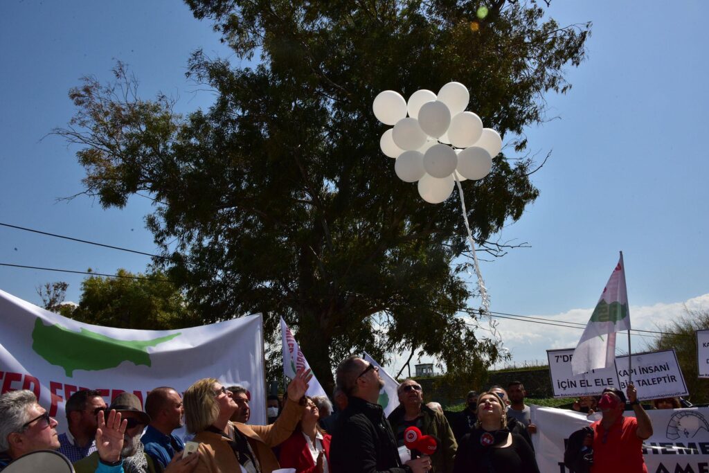 Mağusa Kapısı’nın hem kuzeyi hem de güneyinde eş zamanlı olarak barış balonları uçuruldu.