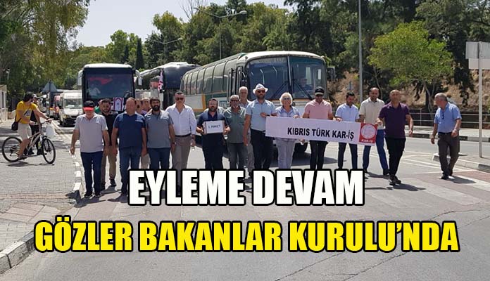 Kıbrıs Türk Kamu Araçları İşletmecileri Birliği (Kar-İş)’in, Lefkoşa’da başlattığı araçlı eylem bugün de devam ediyor.