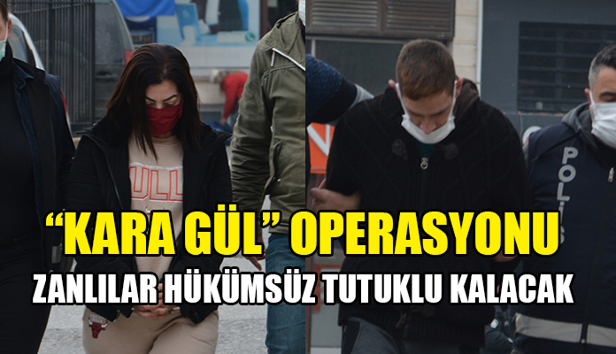 Narkotik ve Kaçakçılığı Önleme Müdürlüğü tarafından uzun sürendir takibi devam eden Pakistan -İran - Güney Kıbrıs ve Kuzey Kıbrıs bağlantılı piyasa değeri 10 milyon TL olan toplam 6 kilo 700 gram uyuşturucu 14 Şubat sevgililer günü gerçekleştirilen “Kara Gül” operasyonu kapsamında tutuklanan zanlılar Zümrüt Deniz ve Cem Derviş Doğu talebiyle mahkeme huzuruna çıkarıldı.