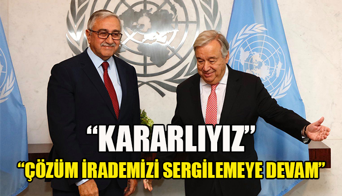 Berlin’de BM Genel Sekreteri Guterres ve Rum lider Anastasiadis’in katılımıyla gerçekleştirilen 3’lü görüşmede varılan mutabakat çerçevesinde gayri resmi 5’li konferansın gerçekleşmesi için çalışmaların olacağıyla ilgili kararı hatırlatan Akıncı, “Çözüm irademizi sergilemeye ‘kararlılıkla’ devam ediyoruz” ifadelerini kullandı.