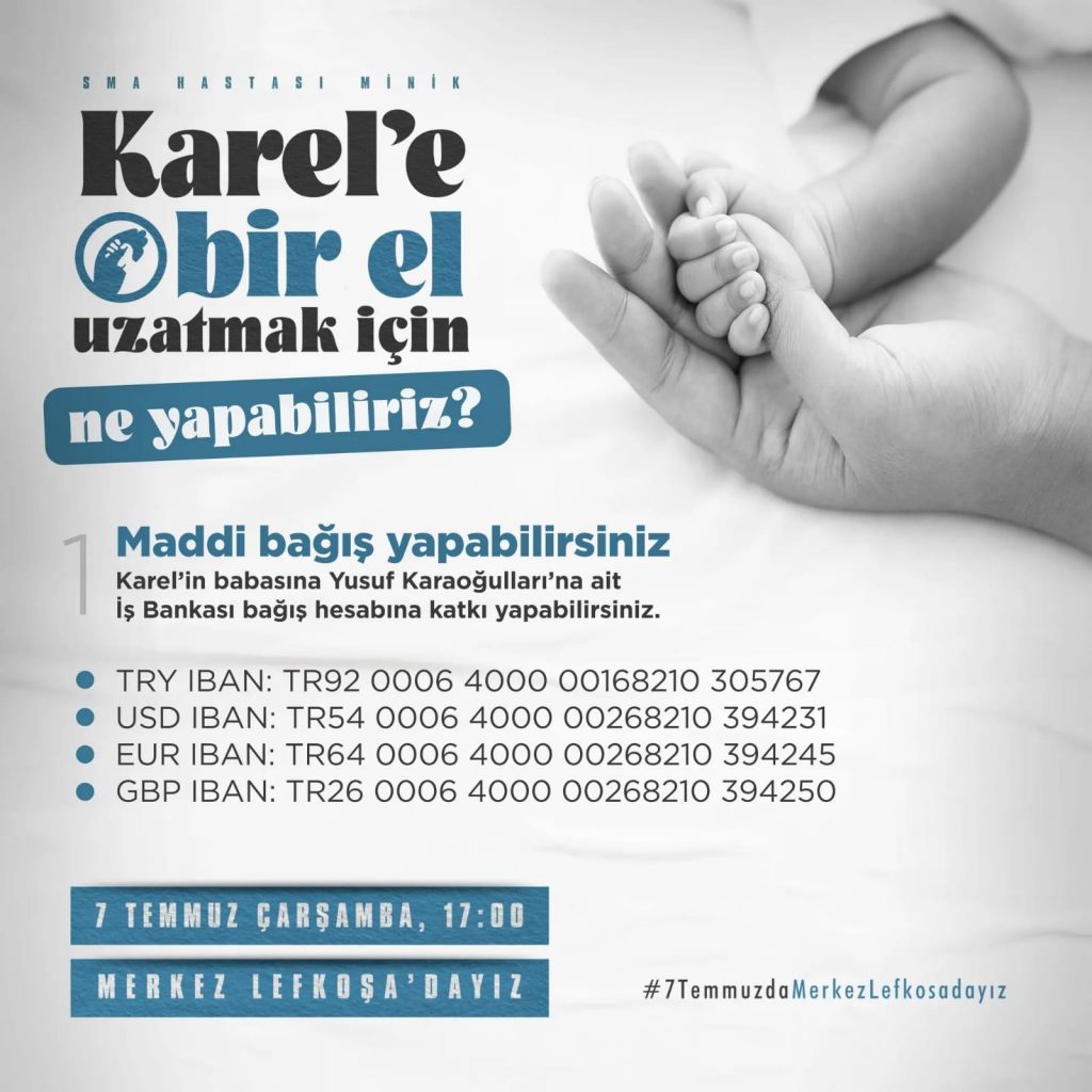 Yeniboğaziçi bölgesinde ikamet eden Karaoğulları çiftinin ikinci çocukları olan Karel bebek, konulan SMA Tip 1 teşhisi nedeniyle tedavi görüyor.