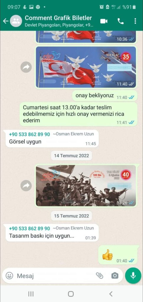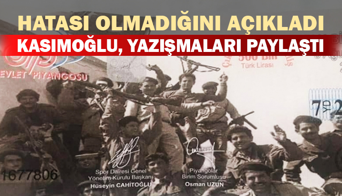 Devlet Piyangosu’nun 8 Ağustos tarihli çekilişinde yer alan EOKA görseliyle ilgili suçlanan Comment Grafik isimli matbaanın sahibi Mehmet Kasımoğlu, görevden alınan Piyangolar İdaresi Müdürü Osman Uzun ile söz konusu görseli onayladığına dair yazışmalarını sosyal medya hesabından paylaşarak, kendisinin bu olayda bir hatası olmadığını açıkladı.