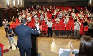 Mısırlızade Sineması olarak bilinen, Rauf Denktaş Üniversitesi Kültür Merkezi’nde toplanan DP PM, Covid 19 önlemleri çerçevesinde, aralıklı oturma düzeni ,ateş ölçme ve maske zorunluğu prensipleri içerisinde toplandı.