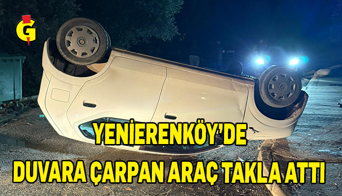 Yenierenköy'de Ali Akdemir (E-33) yönetimindeki UY 902 plakalı salon araç ile dikkatsiz sürüş nedeniyle taş duvara çarpıp takla attı, kaza sonucunda yaralanan olmadı.