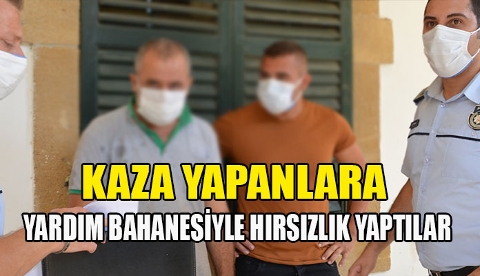 Mağusa – Lefkoşa yolunda kaza edenlere yardım edecekleri bahanesi ile hırsızlık yapan zanlılar Reşat Kayışkanat ve İbrahim Çelik dün mahkeme huzuruna çıkarıldı.
