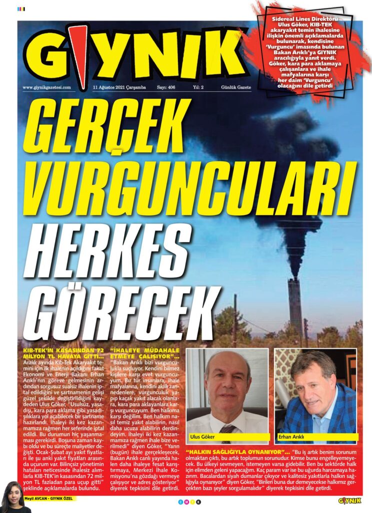 GIYNIK Gazetesi’nin defalarca manşetine taşıdığı KIB-TEK akaryakıt konusunda GIYNIK Gazetesi’nin manşetlerini doğrular nitelikte gelişmeler yaşanmaya devam ediyor. Uzun süreden beridir ülkeye 28 doların altında fuel-oil yakıt getirilebileceği iddiasıyla, hiçbir bilimsel dayanağı olmadan KIB-TEK akaryakıt temin ihalesinin rayiç bedelini de kendi kafasına göre belirlediği ton başına 28 dolar üzerinden açan Ekonomi ve Enerji Bakanı Erhan Arıklı, 9 aydır oyaladığı ve iptal ettiği ihaleler nedeniyle Teknecik Elektrik Santrali’ni yakıtsız bıraktı. Yakıtsız bırakılan Teknecik Elektrik Santrali’ne doğrudan alım şeklinde TPIC’den yakıt temin eden ve bu yakıtı da ton başına 36 dolar fiyattan temin eden Erhan Arıklı ve Arıklı’nın KIB-TEK şürekası, ülkeye getirilen yakıtın kalitesi ve menşeiyle ilgili bilgi vermekten ve açıklama yapmaktan kaçınıyor. Ülkeye getirilen ne idüğü belirsiz ve kalitesiz yakıtlar nedeniyle Teknecik Elektrik Santrali’nin bacaları zehirli duman saçmaya devam ediyor.