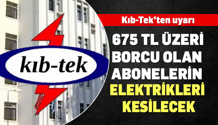 Kıbrıs Türk Elektrik Kurumu (Kıb-Tek), son ödeme süresi dolmuş ve 675 TL üzeri borcu olan abonelerin elektrik enerjilerinin perşembe günü kesileceğini duyurdu.