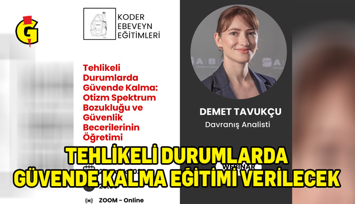 Davranış Analisti Demet Tavukçu tarafından verilecek eğitimde, “Tehlikeli Durumlarda Güvende Kalma: Otizm Spektrum Bozukluğu ve Güvenlik Becerilerinin Öğretimi” konusu ele alınacak.