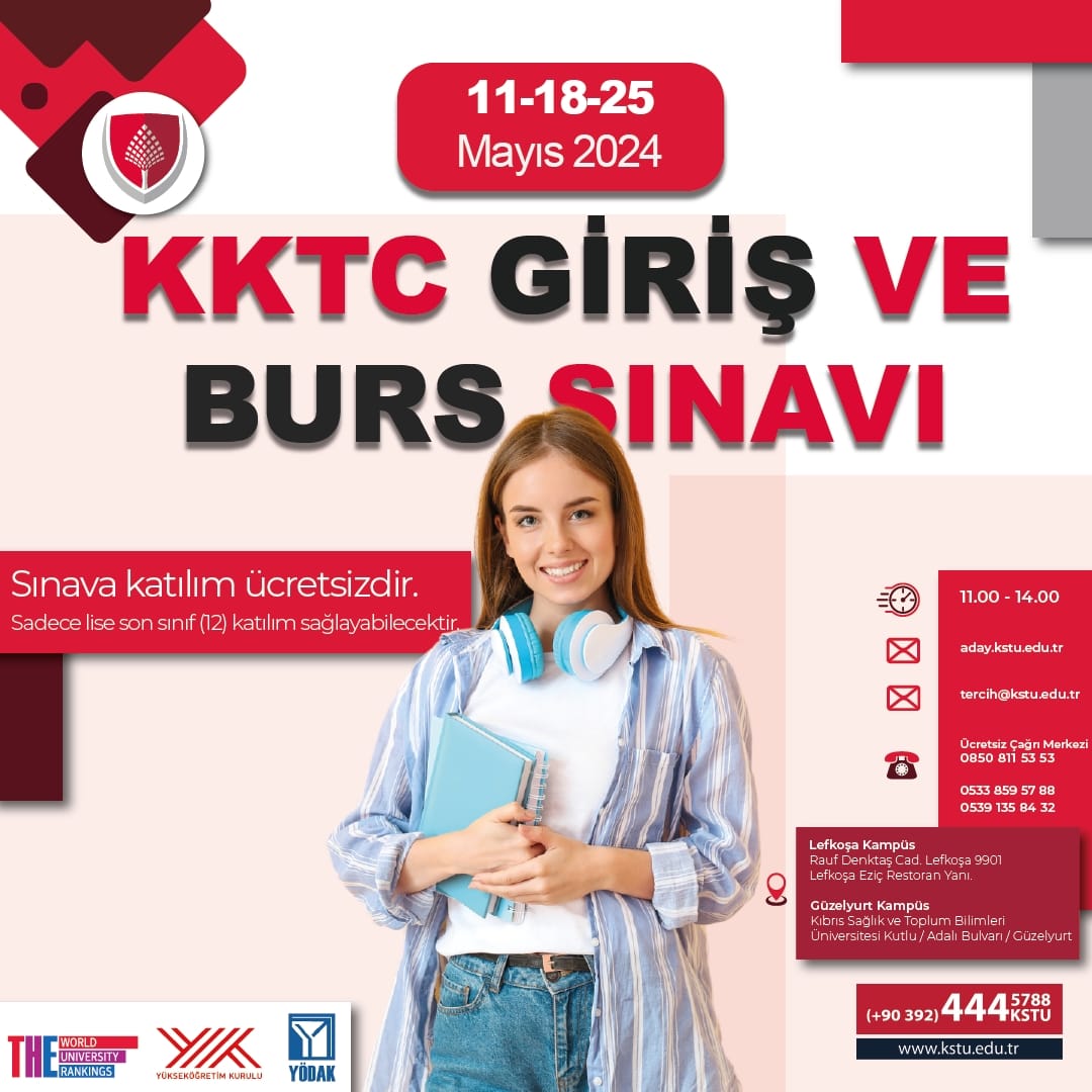 Kıbrıs Sağlık ve Toplum Bilimleri Üniversitesi, 2024-2025 eğitim öğretim yılında KKTC uyruklu öğrenciler için burs ve yerleştirme sınavına başvuru almaya devam ediyor.