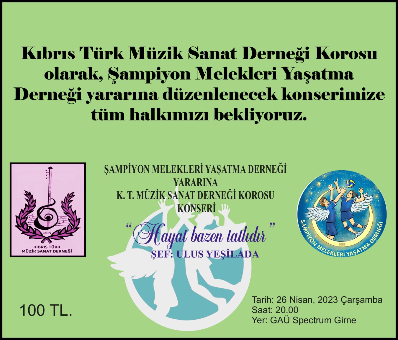 Kıbrıs Türk Müzik Sanat Derneği Korosu’nun Şampiyon Melekleri Yaşatma Derneği yararına vereceği konserde, “Şampiyon Melekler” için bestelenen ağıt ilk kez seslendirilecek.