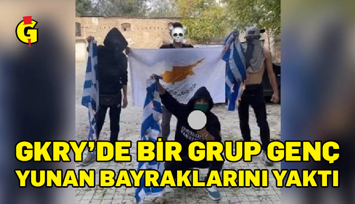 Kıbrıs’ın güneyin bir grup genç Yunan bayraklarını yakarak, poz verdi