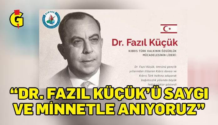 Kıbrıs Türk Eğitimciler Sendikası (KIBTES) Başkanı Himmet Turgut, Kıbrıs Türk öğretmenlerinin, Dr. Fazıl Küçük’ün açtığı yolda emin adımlarla yürüdüğünü ve aziz mücadele ruhunu saygıyla selamladığını vurguladı.