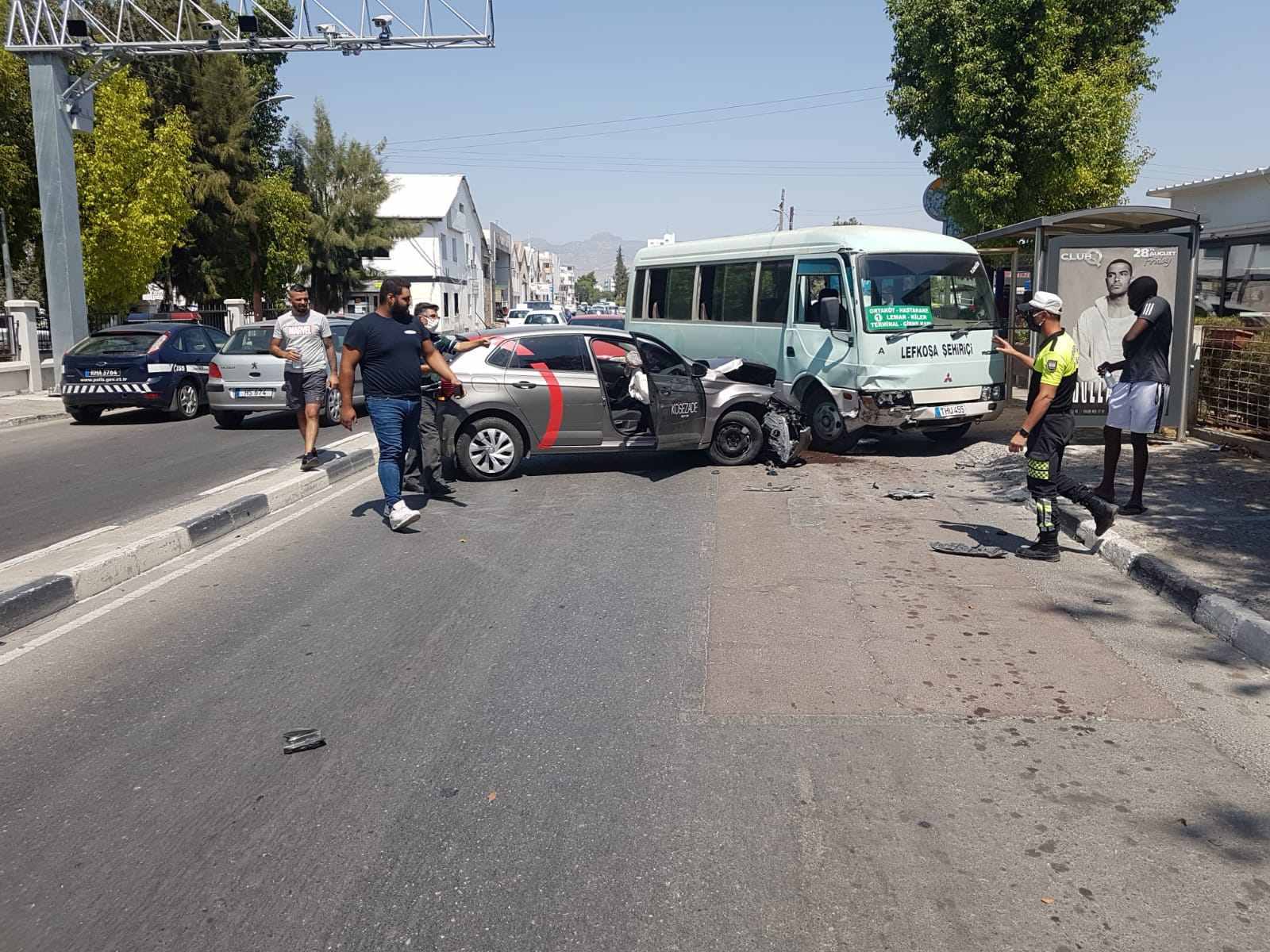 Sıcaklar yaramadı, bugün saat 13:15 sıralarında Lefkoşa’da Abdi İpekçi Caddesi üzerinde kiralık araç karşı şeride geçerek, durakta yolcu indiren otobüse çarptı.