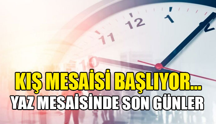 20 Eylül’de başlayacak ve 8 Mayıs’a kadar sürecek kış mesaisi boyunca, günün yirmi dört saatinde süreklilik gösteren ve elzem olan hizmetler dışında kalan kurumlarda pazartesi, salı, çarşamba, cuma günleri 08.00-12.30 ve 13.00-16.15 saatleri arasında, perşembe günleri ise 08.00-12.30 ve 13.00-17.30 saatleri arasında mesai yapılacak.