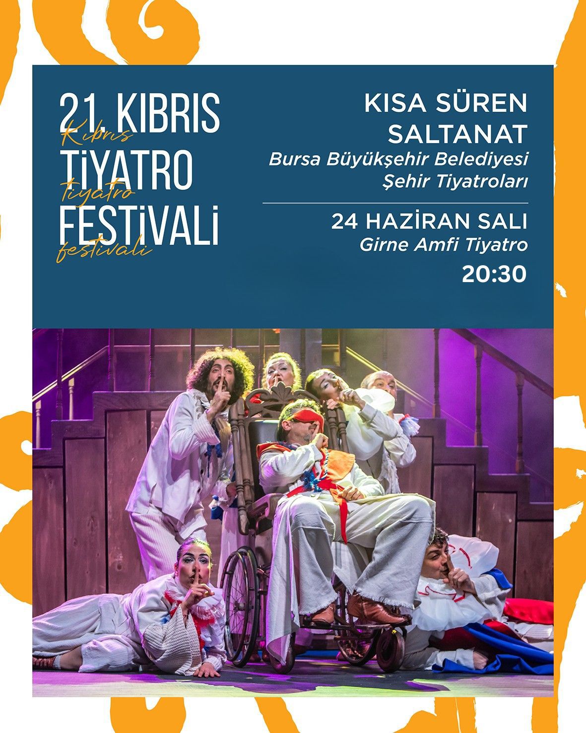 Lefkoşa Türk Belediyesi, Girne Belediyesi ve Gazimağusa Belediyesi iş birliğinde düzenlenen “21. Kıbrıs Tiyatro Festivali” kapsamında “Kısa Süren Saltanat” oyunu, yarın Girne Amfi Tiyatro’da sahnelenecek. Oyun saat 20.30’da başlayacak.