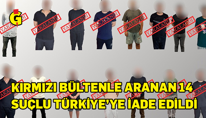 Türkiye İçişleri Bakanı Ali Yerlikaya, kırmızı bültenle aranan 14, ulusal bültenle aranan 1 kişi yakalandığını bildirdi. 15 suçlu, Gürcistan, Almanya, Yunanistan, Belçika, Sırbistan ve Kuzey Kıbrıs Türk Cumhuriyeti’nden (KKTC) Türkiye’ye iade edildi.