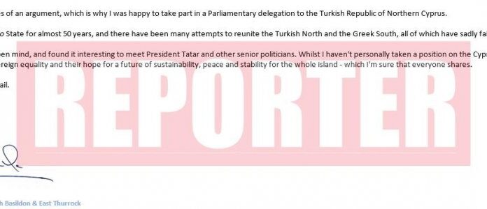 Stephen Metcalfe Reporter’e verdiği yanıtta KKTC’nin nerdeyse 50 yıldır de-facto bir Devlet olduğunu” yeniden vurguladı.