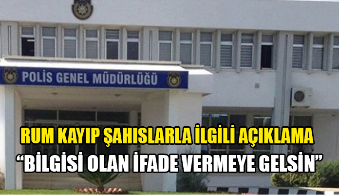 KKTC Polis Genel Müdürlüğü’nün Kıbrıslı Rum kayıp şahıslarla ilgili yayımladığı bildiride şöyle denildi: