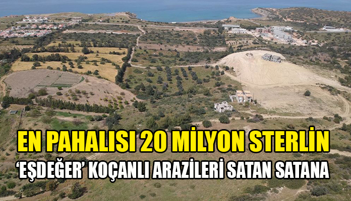 KKTC’de şu anda 759 adedi Türk koçanlı olmak üzere 3 bin 973 adet satılık arazi var. Piyasadaki en pahalı satılık arazi 20 milyon sterline Çatalköy’de. 50 dönümlük arazi “eşdeğer koçanlı”
