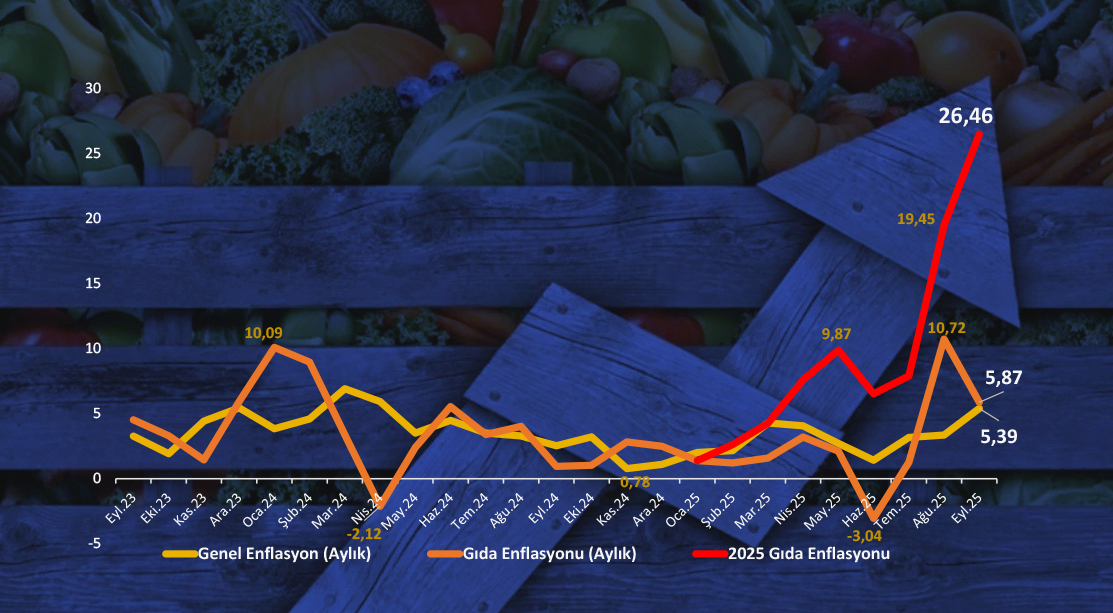 KKTC İstatistik Kurumu, Eylül ayı gıda fiyatları artışını %5.87 olarak açıkladı. Haziran’da “eksi” %3.04 olan gıda enflasyonu, Temmuz’u %1.27, Ağustos’u ise %10.72 artışla geçmişti. Eylül’deki artışla birlikte son üç ayda gıda enflasyonundaki artış %18.70’i geçti. Bu miktar Temmuz itibarıyla maaş ve ücretlere yapılan %17.79’luk artıştan daha fazla. Başka deyişle üç aylık enflasyon yapılan artışları eritti. Resmi verilere göre ayrıca 2025’in 9 aylık döneminde gıda enflasyonu %26.46’yı bulurken, yıllık gıda enflasyonu %34.64’e fırladı. Gıda fiyatlarındaki son iki yılın artış oranı ise %113 oranında hesaplandı.