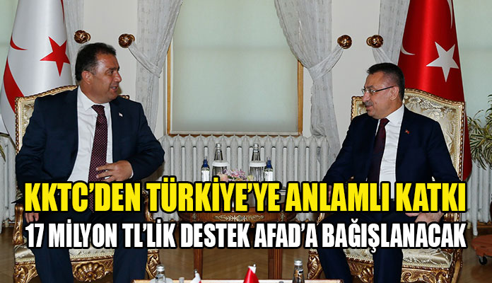 Fuat Oktay da “ Bu bizim için çok anlamlı. Miktarın çok ötesinde bir olay… KKTC’deki kardeşlerimizin gönüllerinden kopan ve sizinle birlikteyiz mesajının net göstergesidir. Yürekten teşekkür ederiz. Bu miktarı hemen AFAD hesaplarına geçeceğiz. Zarar gören bir köyümüzde değerlendirilmesi talebi var. Bunun için çalışıyoruz. Kendilerine bu yardımın hangi köyde değerlendirileceğini de bildireceğiz. Çok teşekkür ediyoruz” diye konuştu.