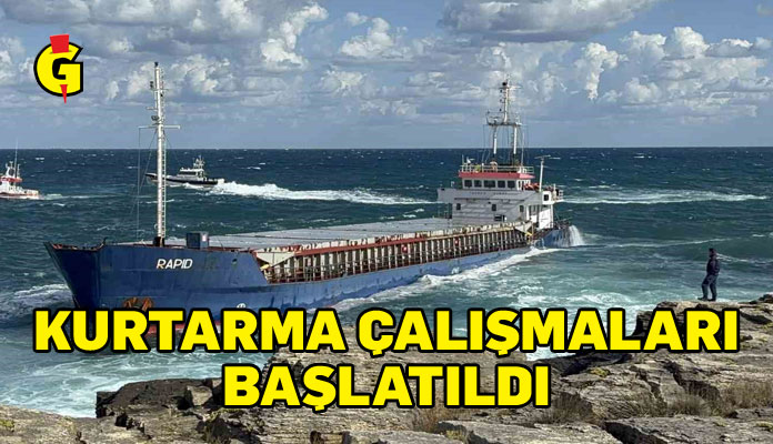 Kuru yük gemisi daha sonra kıyıdaki kayalık bölgede karaya oturdu. 7 kişilik mürettebatı bulunan geminin kurtarılması için ekiplerce çalışma başlatıldı.