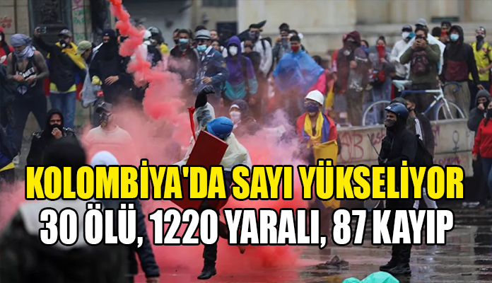 Kolombiya'da 7 günden bu yana devam eden vergi reformu karşıtı kitlesel gösterilerde en az 30 kişinin öldürüldüğü belirtilirken, bin 220 kişinin yaralandığı ve 87 kişinin ise kayıp olduğu öğrenildi.
