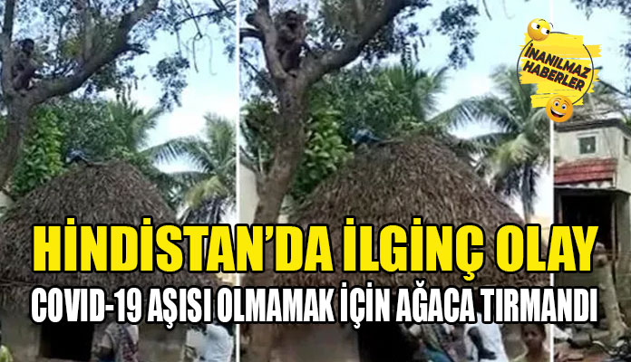 Hindistan’ın Puducherry bölgesinde bir adam, Kovid-19 aşısı yapmak üzere evine gelen sağlık ekiplerinden kaçarak ağaca tırmandı.