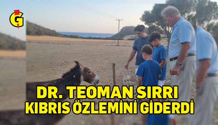 Bir süre önce KKTC’ye gelen Dr. Sırrı, sağlık konusunda verdiği konferansın ardından torunlarıyla birlikte Karpaz’ı ziyaret etti. Burada özgür eşeklerle renkli görüntüler veren Dr. Teoman Sırrı, Kıbrıs ve doğa sevgisiyle biliniyor.