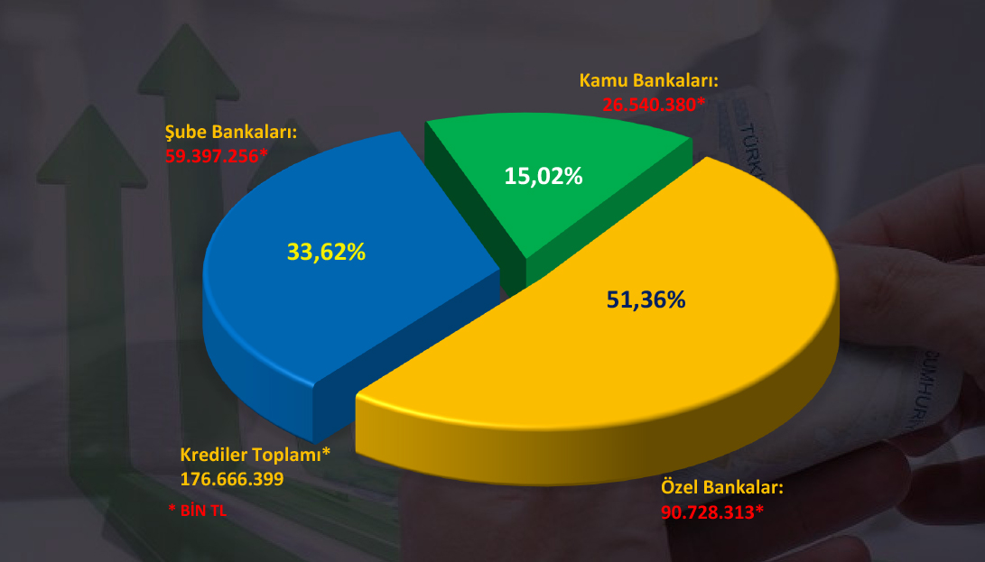 Açıklanan veriler ayrıca, kredi yükünün yarısından fazlasının hala özel bankaların sırtında olduğunu gösteriyor. Verilere göre, özel bankalar 90,7 milyar TL’lik miktar ve %51.4’lük payla ilk sırada yer aldı. Türkiye kökenli şube bankaları 59,4 milyar TL’lik miktar ve %33.6’lık payla ikinci; kamu bankları da 26,5 milyar TL ve %15’lik payla üçüncü sırada yer aldı. Krediler içindeki payı artışta olan şube bankalarının daha çok TL cinsi kredi verdiği de dikkati çekti.