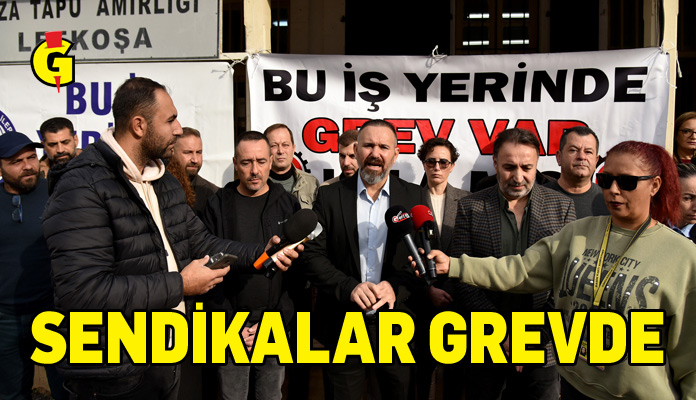 Sendikalar, Lefkoşa Kaza Tapu Amirliği önünde basın açıklaması yaparak, bugün mesai bitimine kadar sorunların çözümüne yönelik adım atılmaması halinde yarın da grev yapacaklarını duyurdu.